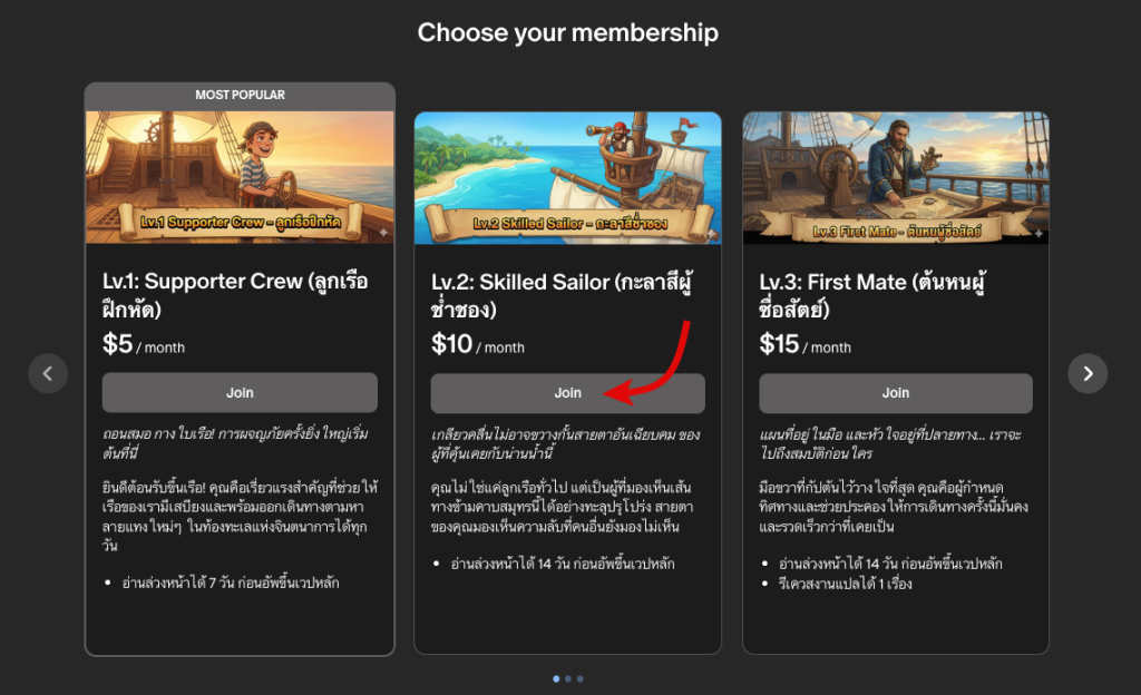 กดเลือก Join ระดับที่ต้องการ เช่น ระดับ Lv.2 ก็คลิ๊กที่ Join ของ Lv.2