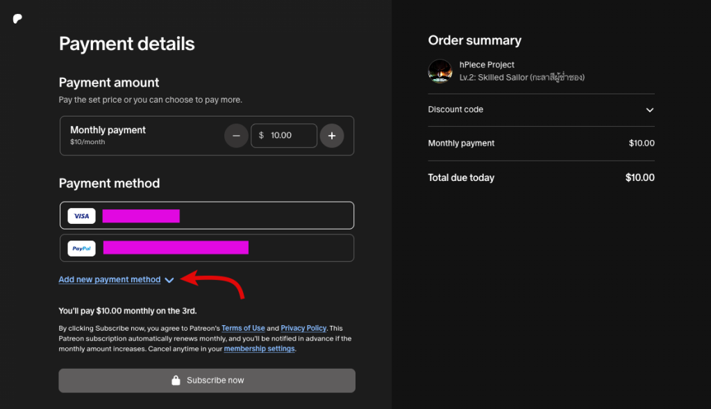 5. ถ้าสมัคร Patreon ของ hPiece Project สำเร็จจะขึ้นหน้าจอแบบนี้